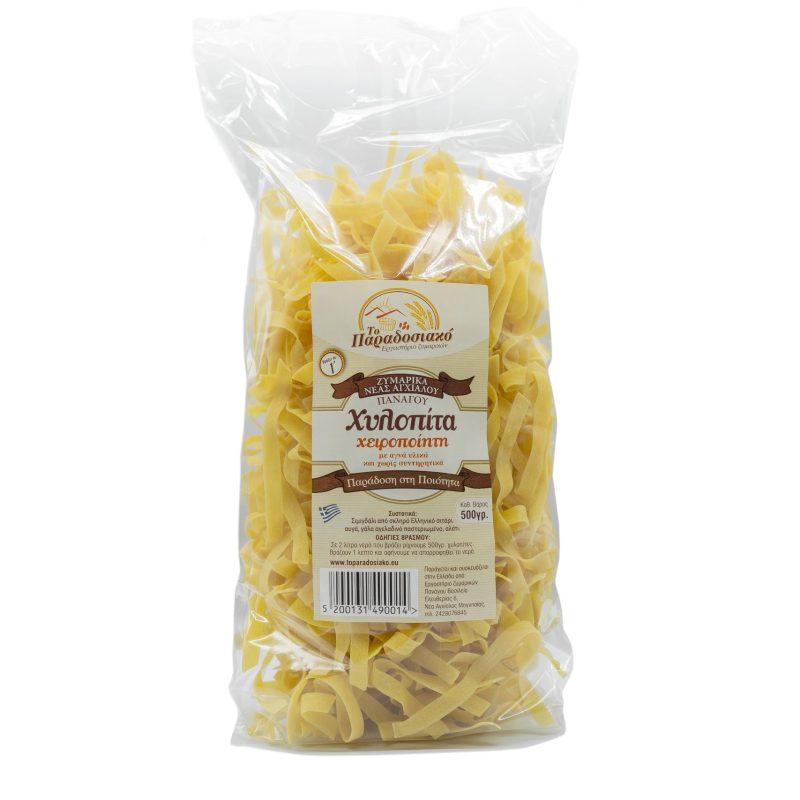 Traditional pasta made by the Outas artisanal factory in N. Anchialos. The pasta produced in our artisanal factory is renowned for its deliciousness and excellent quality, as raw materials such as eggs, milk and vegetables from local producers are used. Noodles Noodles made from vegetable broth Whole wheat noodles Cut noodles Sour trachanas Sweet semolina trachanas Sweet wheat trachanas handmade Fasting/diet trachanas Barley noodles Cut spaghetti Screw - Shell - Couscous We al...